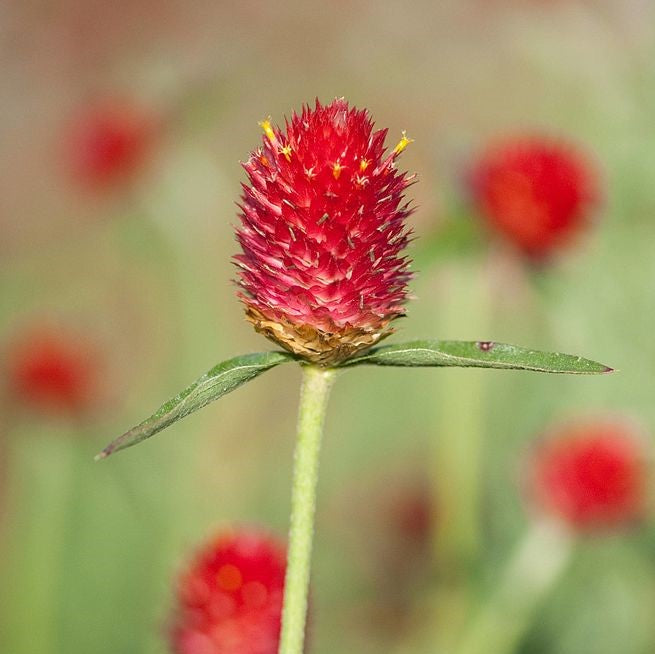 Culture notes: Full sun - 1.5' x 1.5' Globe Amaranth is an annual bedding plant that provides continuous red blooms all summer until first frost. Flower are excellent for both fresh and dried arrangements. Start seeds indoors, several weeks before the last frost or directly outdoors when the temperatures have warmed covering with a 1/4" of soil.