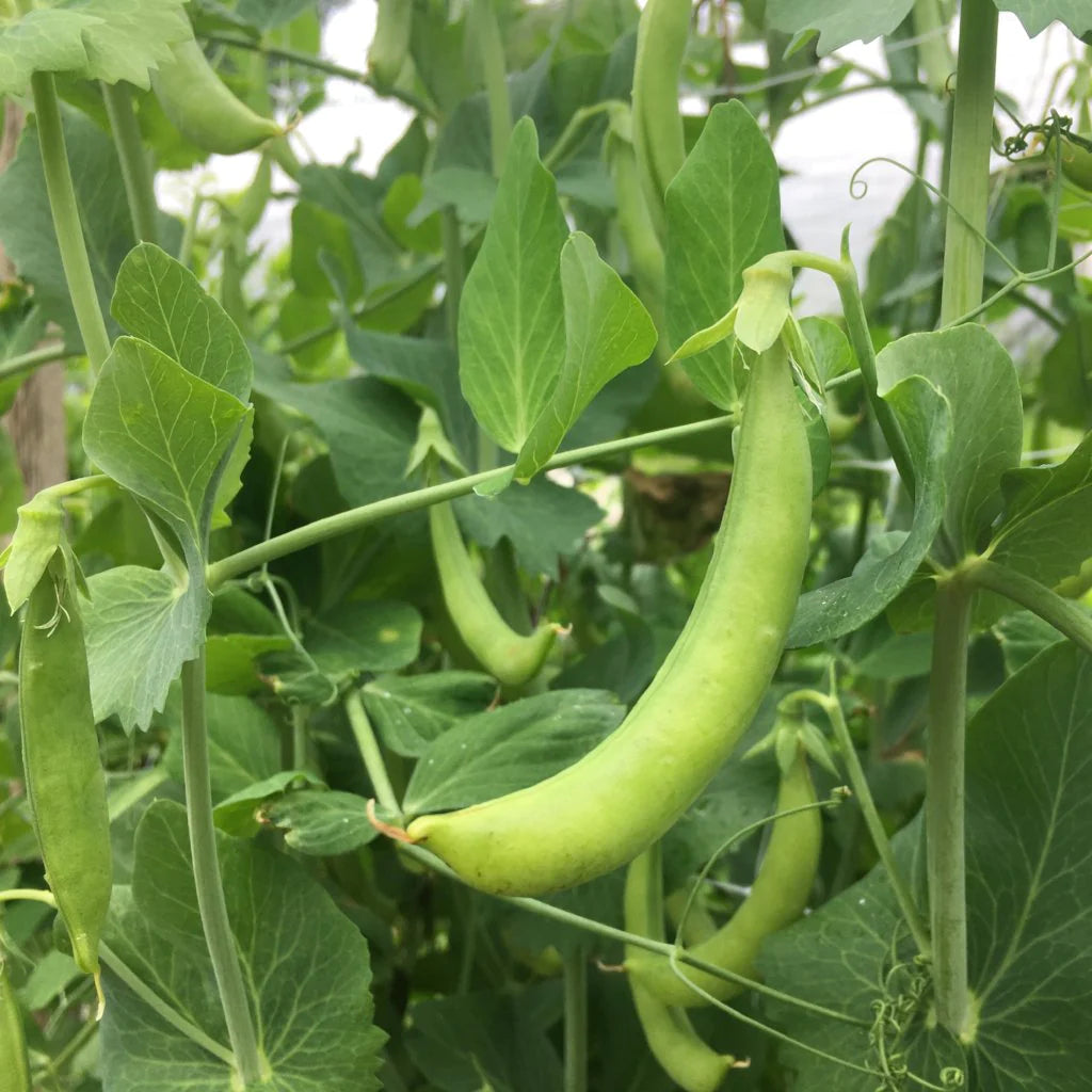 Culture notes: This prolific, tasty pea variety is known to have been present in England as early as 1789. Bartram’s Garden received the seed from William Woys Weaver who says in his description in the book Heirloom Vegetable Gardening that the variety was widely grown in the colonial period in Pennsylvania gardens. It gets it’s name Risser sickle pea from Pennsylvania Dutch gardener Ida Shriner Risser who has most recently preserved the variety. It’s sickle shaped pods are good to harvest young as snap peas in the pod or wait to harvest as shell peas a bit later. We sow this pea as early as the ground can be worked - mid March here in Philadelphia, and give it a trellis to lean on as it’s vines will reach a few feet long.